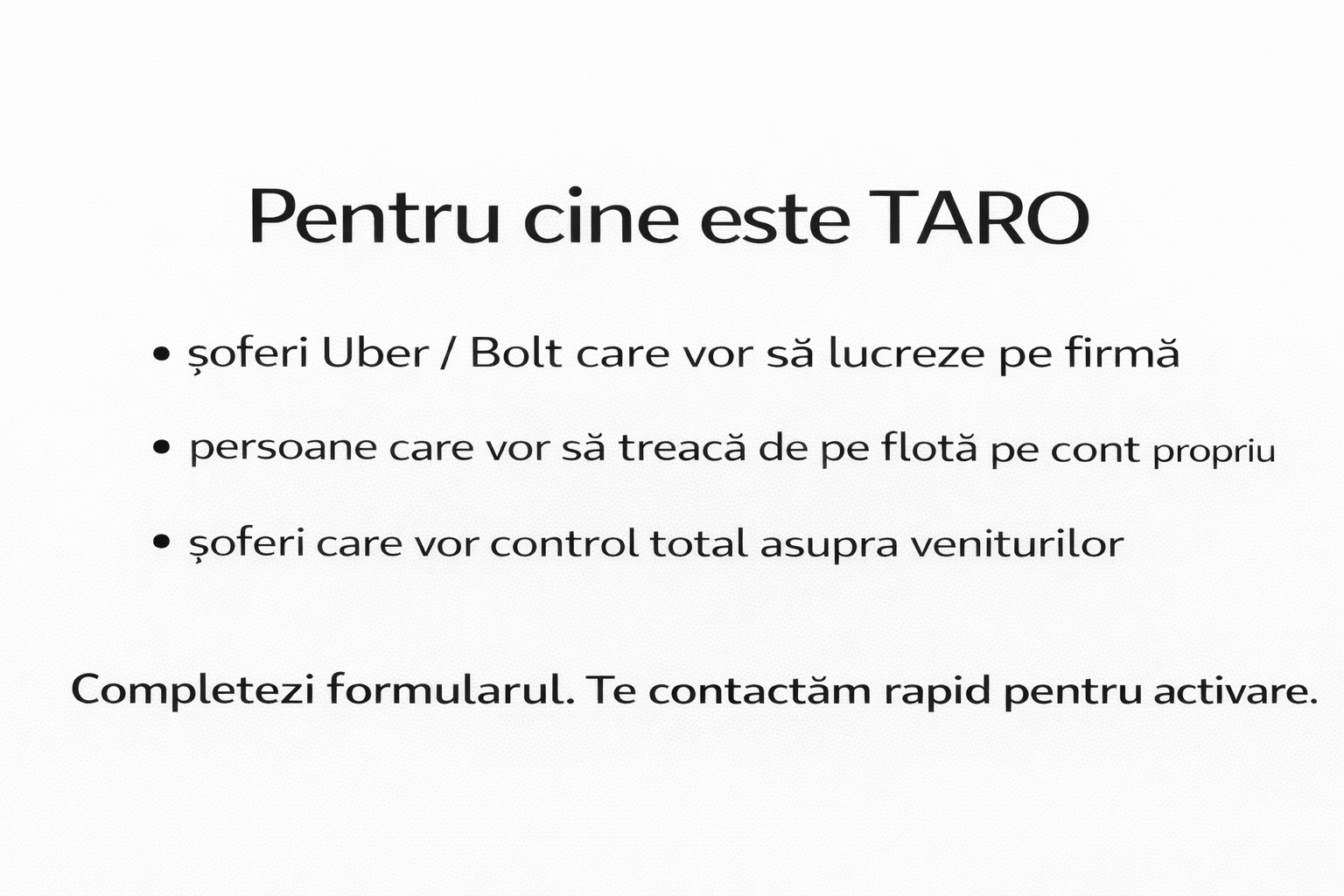 Taro oferă suport complet pentru înființarea PFA sau SRL dedicat transportului alternativ.